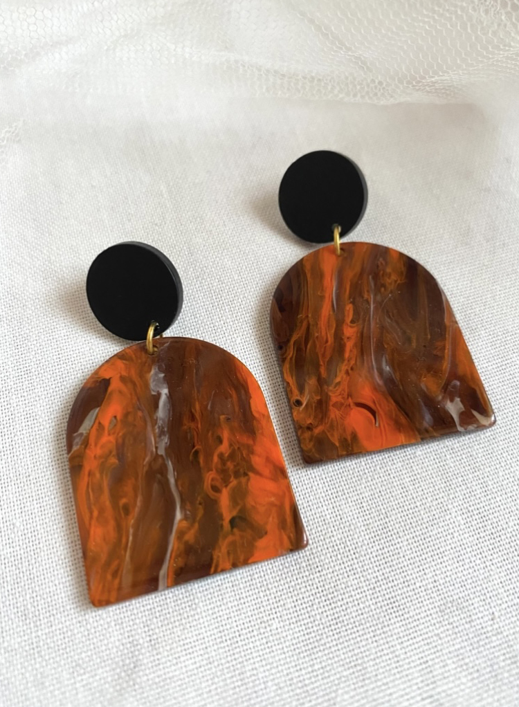 Ohrringe im kupferfarbenen / schwarzen Design.