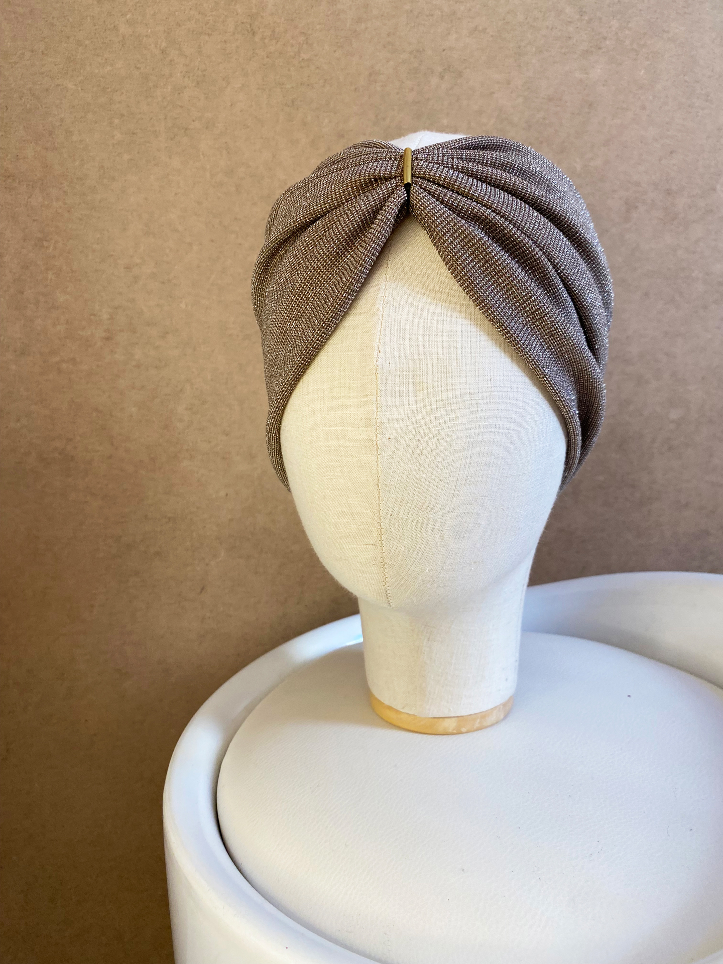 Turban Stirnband in beige dunkel mit metall glitzer
